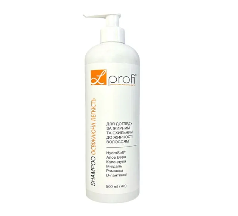 ШАМПУНЬ “ОСВІЖАЮЧА ЛЕГКІСТЬ” ДЛЯ ДОГЛЯДУ ЗА ЖИРНИМ ВОЛОССЯМ + HYDROSOFT® , СЕРІЇ L`PROFI 500 МЛ